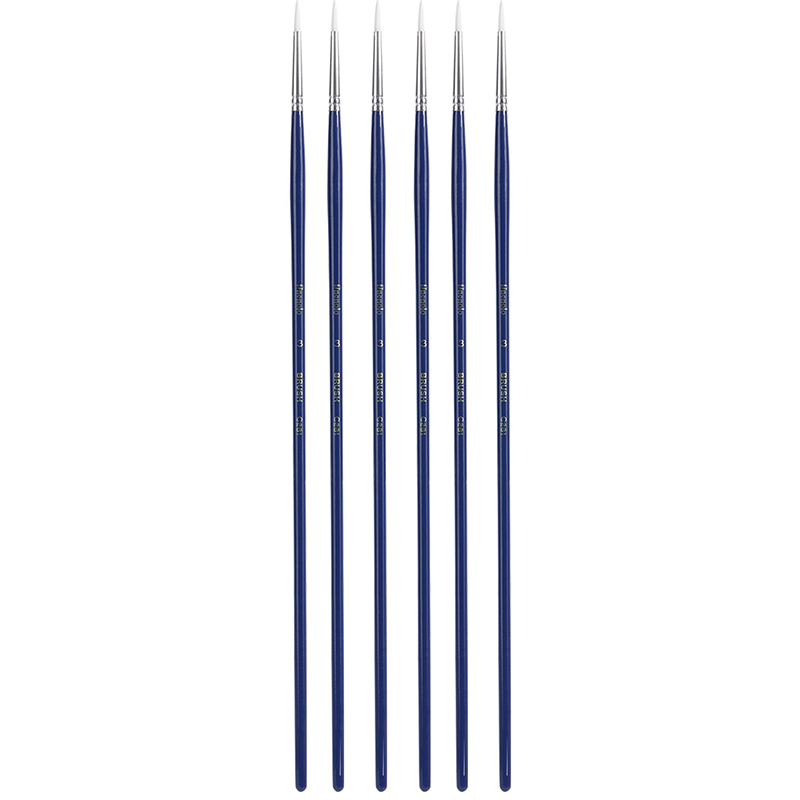 Набор кистей DELI "Finenolo", №3, круглая, березовая ручка 30 см, 6 штуки в уп., синтетика