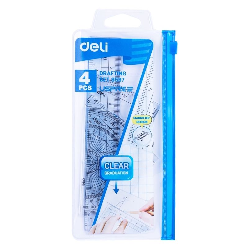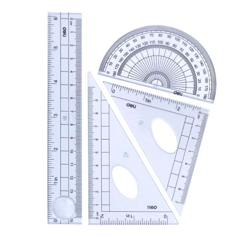 Набор линеек Deli "Uspire" (треугольник .2 шт, линейка 15 см,транспортир), прозрачный