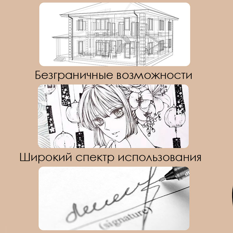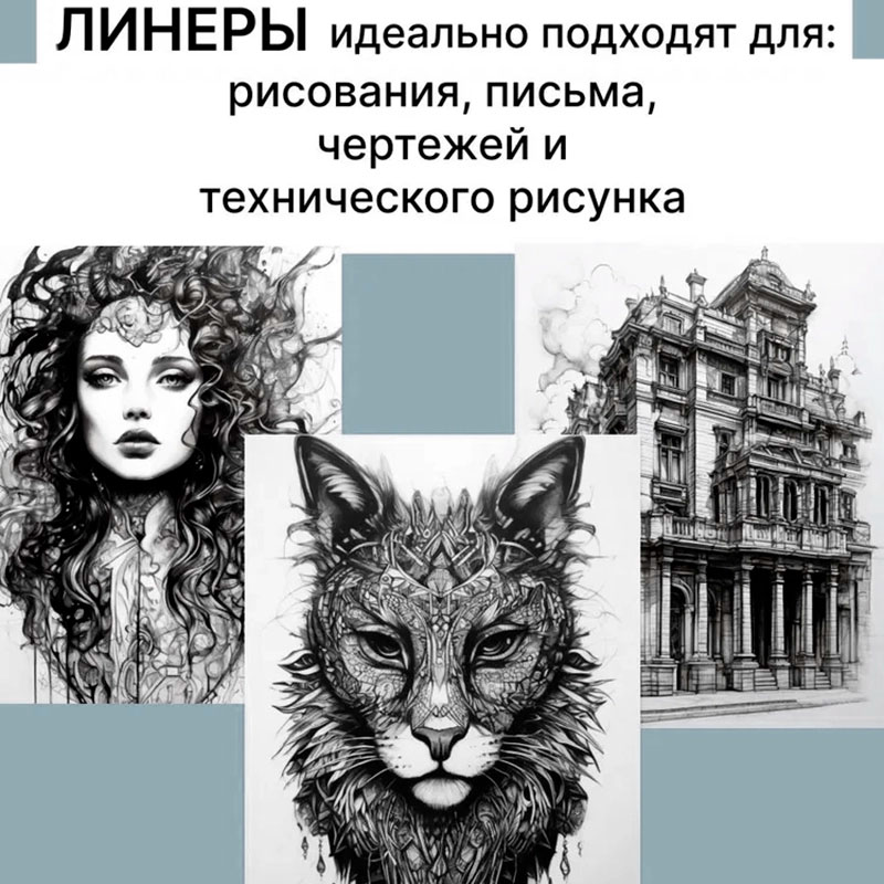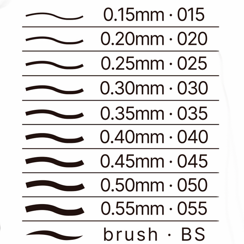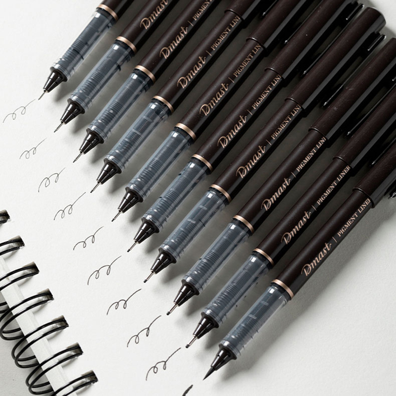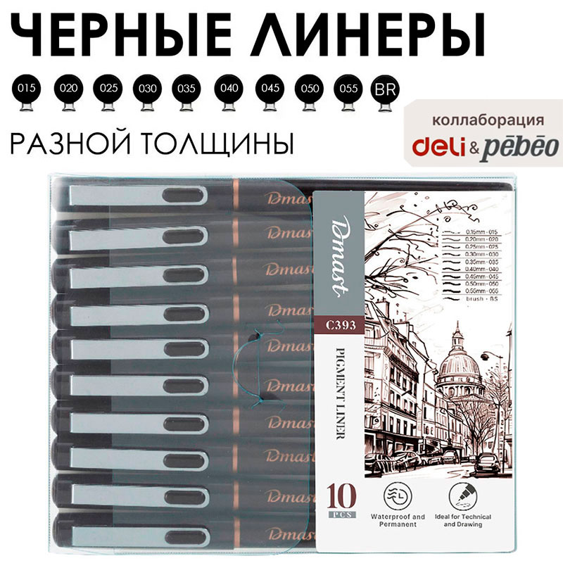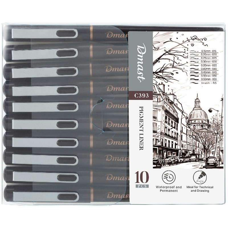 Набор линеров Dmast, 0,15 мм - 0.55 мм, кисть BS, 10 штук в упаковке, черный