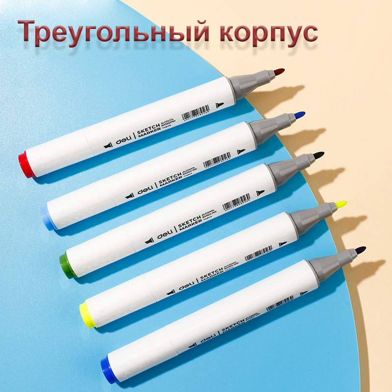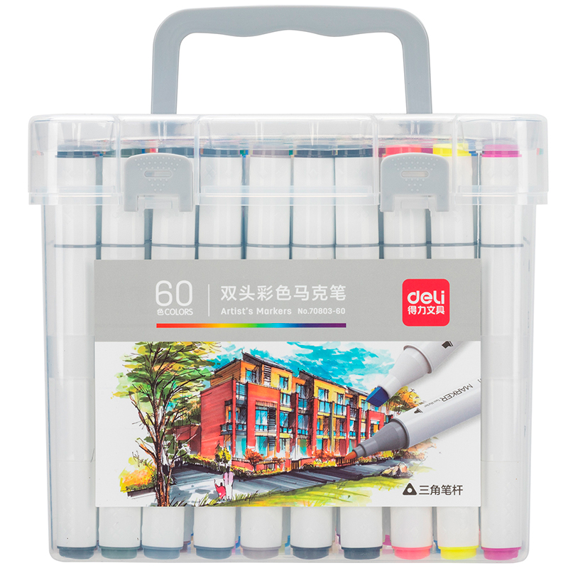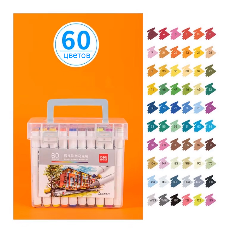 Набор маркеров для скетчинга DELI, двухсторонний 1/6 мм, 60 цветов, пластиковый кейс