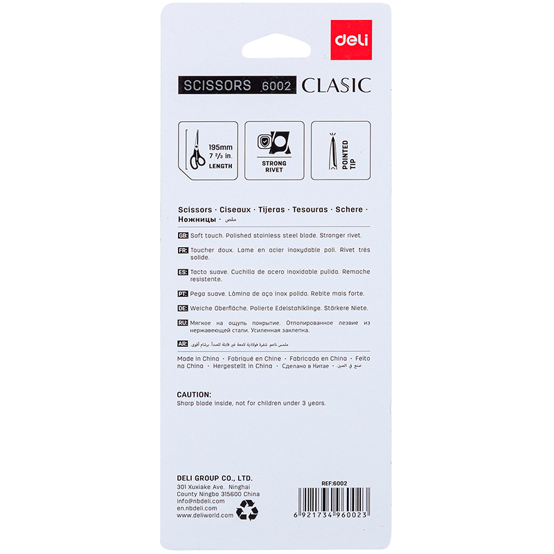 Ножницы DELI "Soft-touch", 195 мм, прорезиненные ручки, ассорти