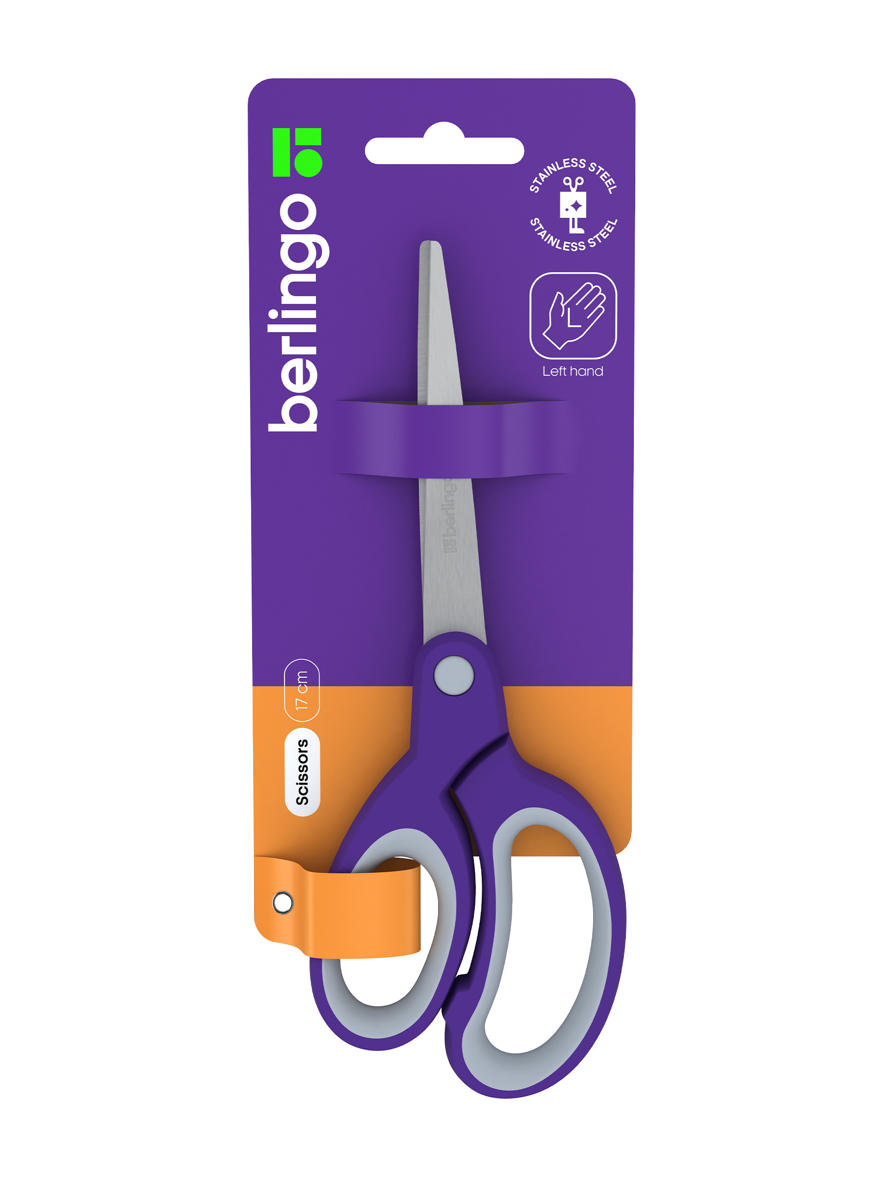 Ножницы для левшей Berlingo 17см, эргономичные ручки, мягкие вставки европодвес DNs_17005