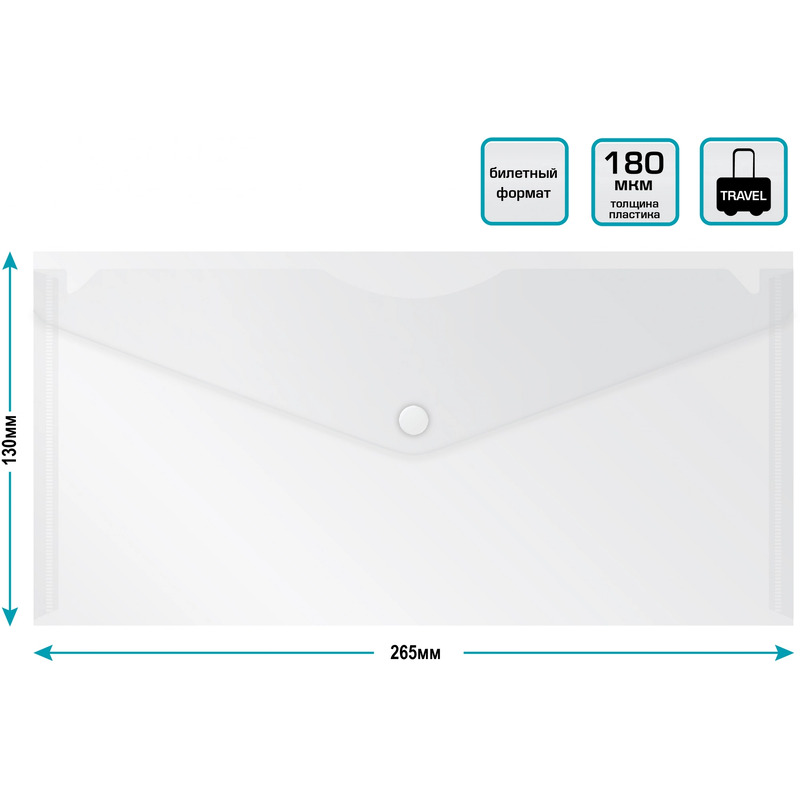 Папка-конверт на кнопке Бюрократ TRAVEL, С6, 180 мкм, прозрачная