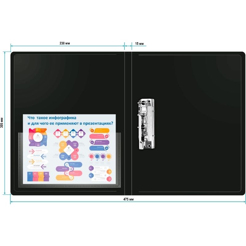 Папка с зажимом Бюрократ, A4, 16 мм, 700 мкм, внутренний и торцевой карман, черная