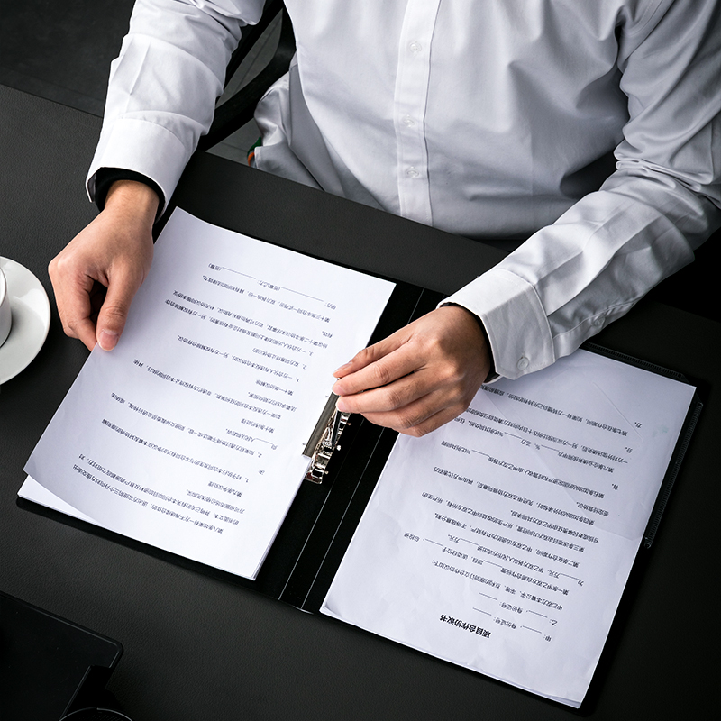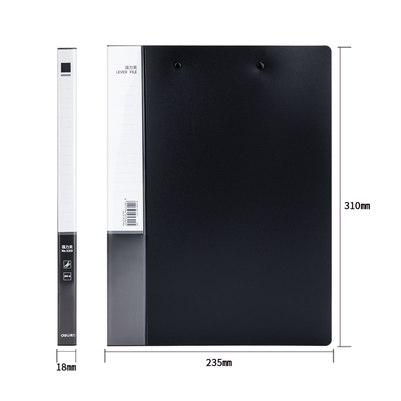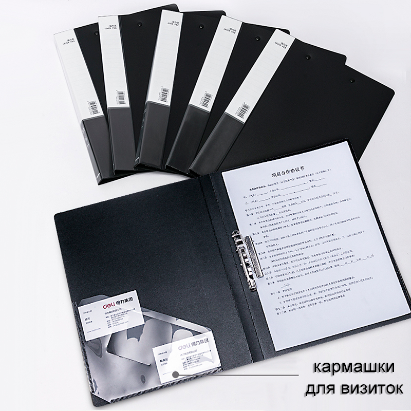 Папка с зажимом DELI, A4, 15 мм, 700 мкм, внутренний и торцевой карман, черная