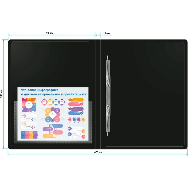 Папка-скоросшиватель с пружинным механизмом Бюрократ, А4, 700 мкм, внут. и торц. карман, черная