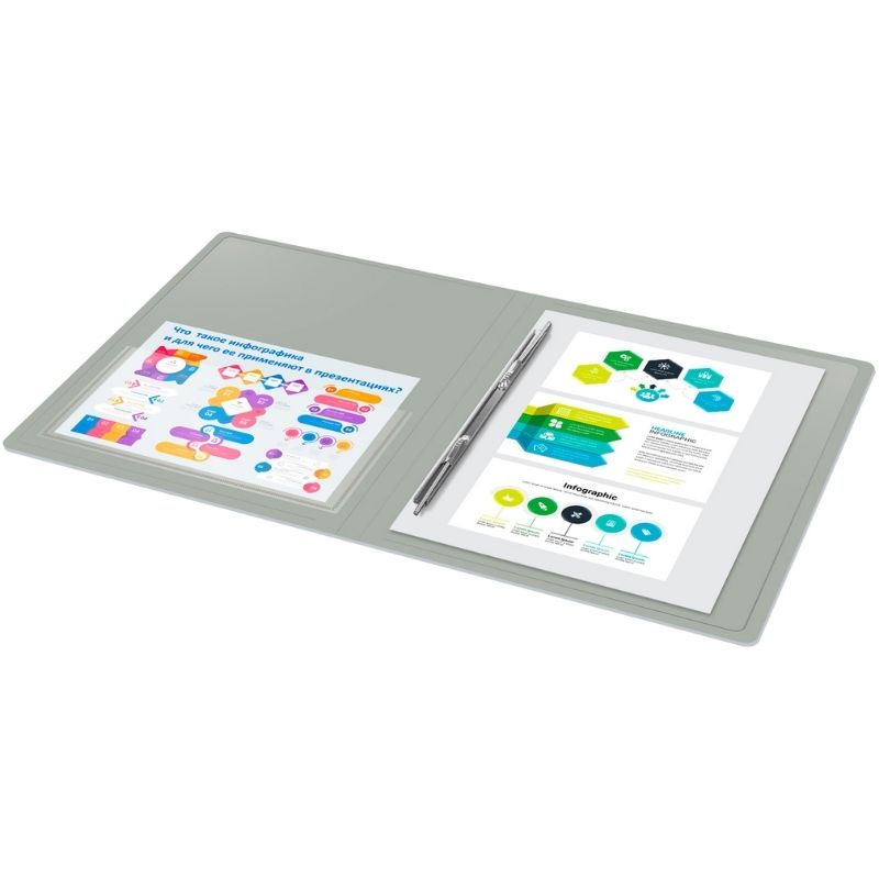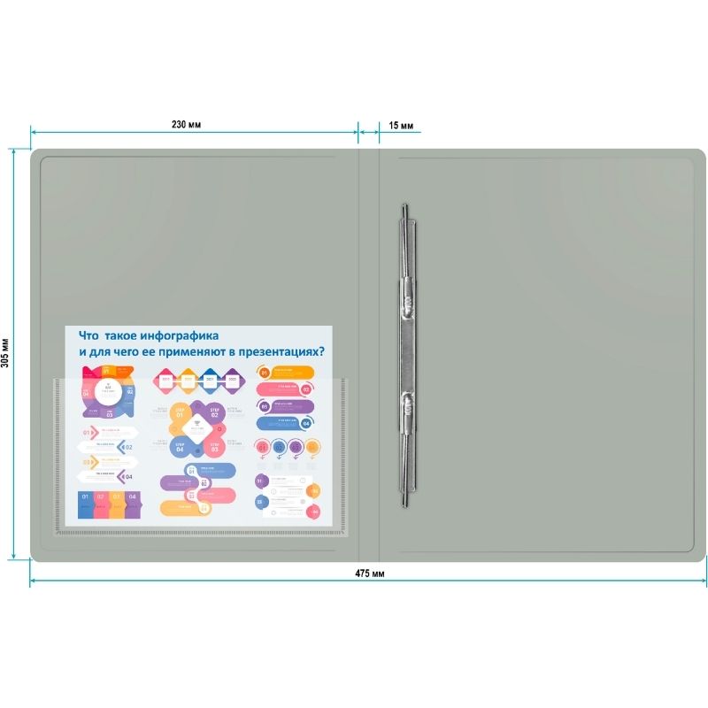 Папка-скоросшиватель с пружинным механизмом Бюрократ, А4, 700 мкм, внут. и торц. карман, серая