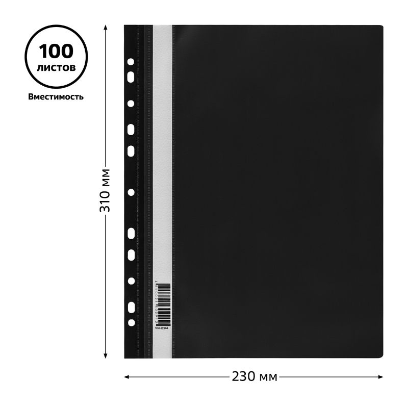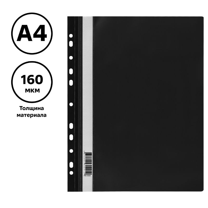 Папка-скоросшиватель СТАММ с перфорацией, А4, 160 мкм, черная