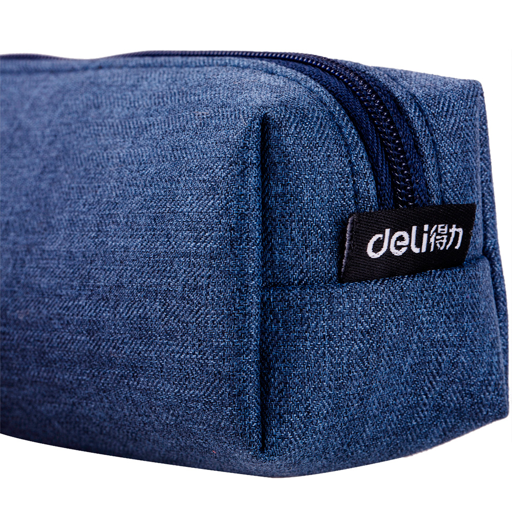 Пенал 1 отделение Deli, 190х50х50 мм, на молнии, синий