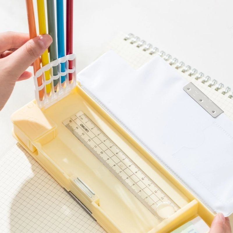 Пенал 2-х сторонний Deli "SpongeBob" + точилка, 235х80х30 мм, пластик, ассорти