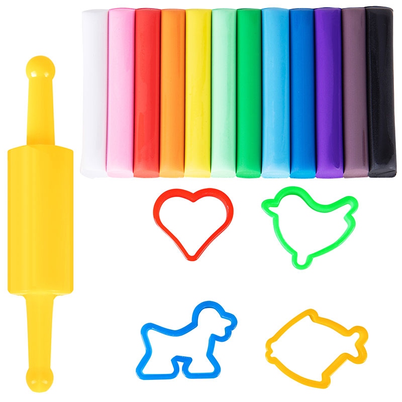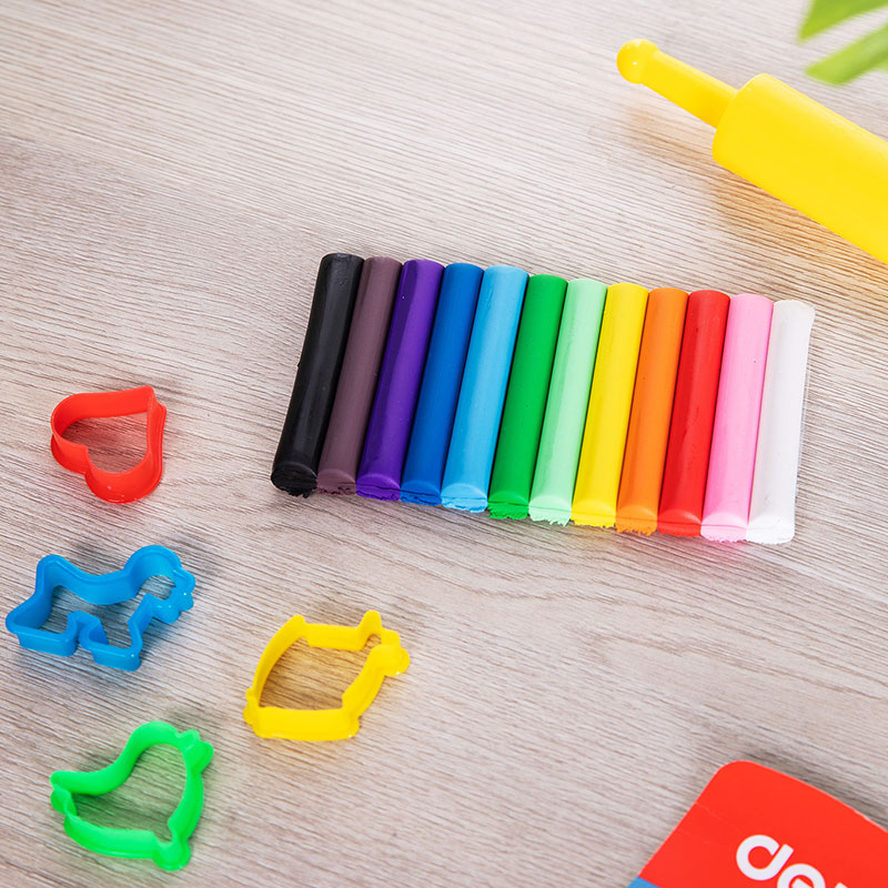 Пластилин Deli "DOUGH IT!" 12 цветов, 160 гр., формы+скалка, блистер с европодвесом