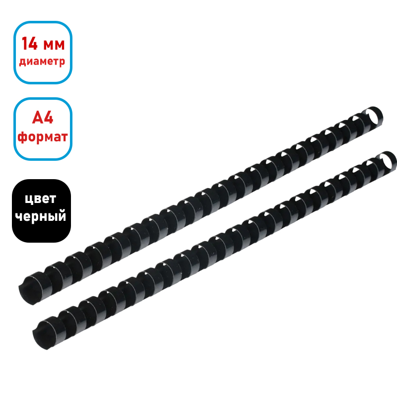 Пружина для переплета пластиковая "BC014", 14 мм, 100 шт/упак, черная