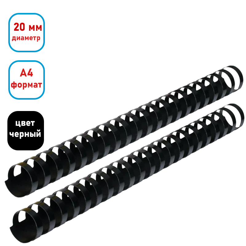 Пружина для переплета пластиковая "BC020", 20 мм, 100 шт/упак, черная