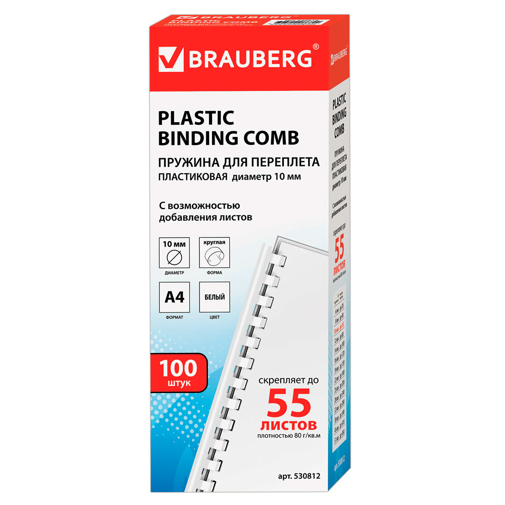 Пружина для переплета пластиковая "BRAUBERG", 10 мм, 100 шт/упак , белая