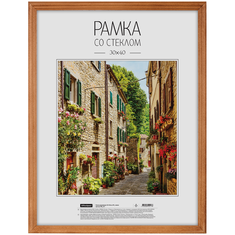 Рамка деревянная, OfficeSpace, №1, мокко, стекло, 30х40 см