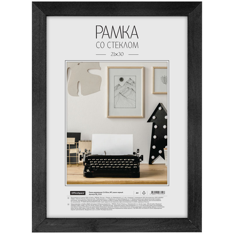 Рамка деревянная, OfficeSpace, №3, венге, стекло, 21х30 см