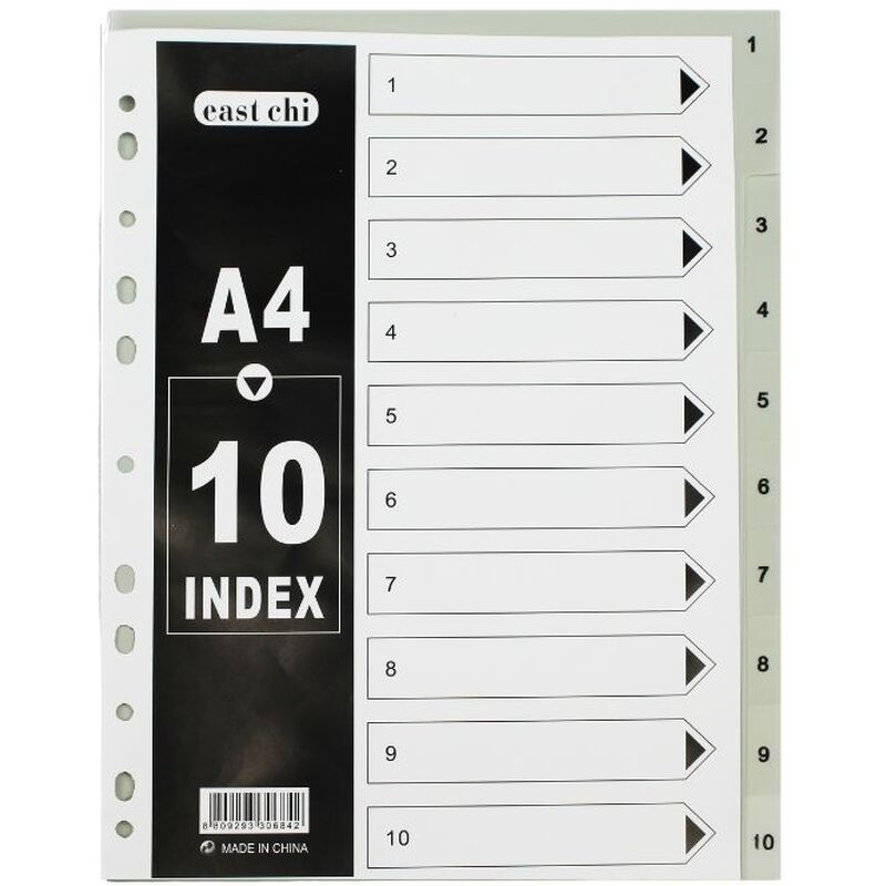Разделитель пластиковый BASY, А4, 10 листов, серый