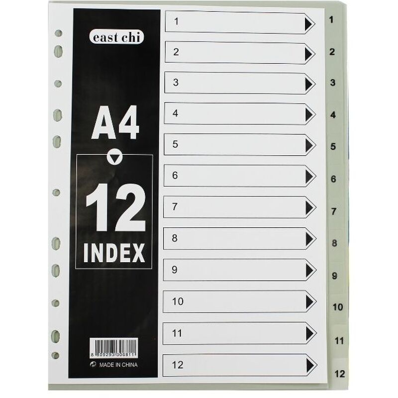 Разделитель пластиковый BASY, А4, 12 листов, серый