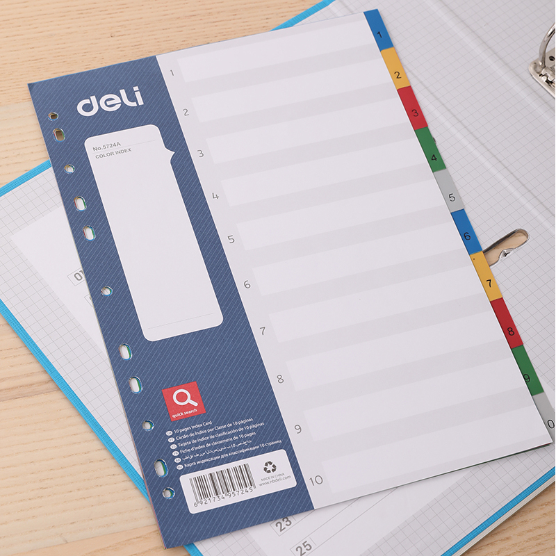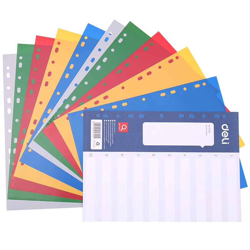 Разделитель пластиковый DELI, А4, 10 листов, цветной