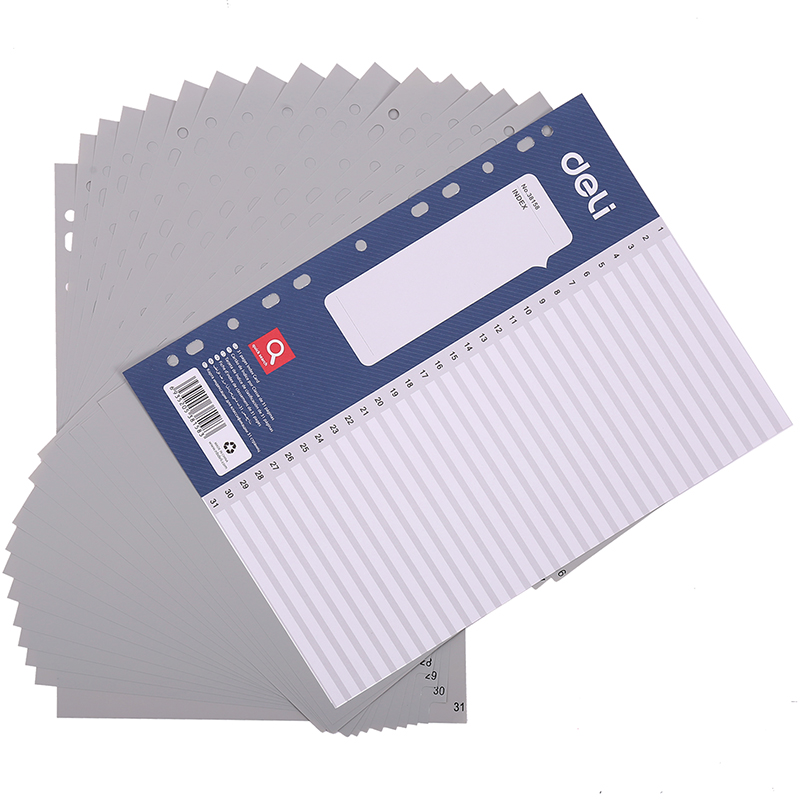 Разделитель пластиковый DELI, А4, 31 лист, серый