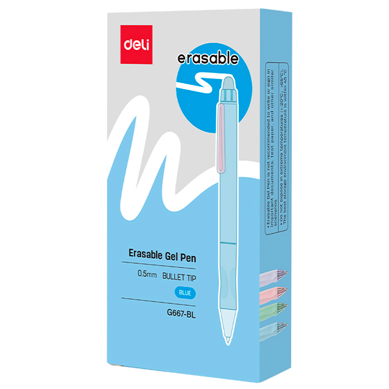 Ручка гелевая DELI "G667" 0,5 мм, синяя, автоматическая, стирающиеся чернила