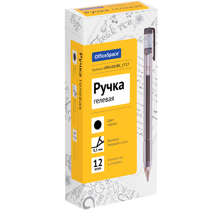 Ручка гелевая OfficeSpace 0,5 мм, черная