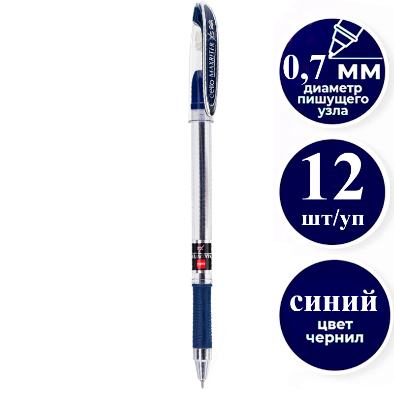 Ручка шариковая CELLO "MAXRITER XS" 0,7 мм, синяя, грип