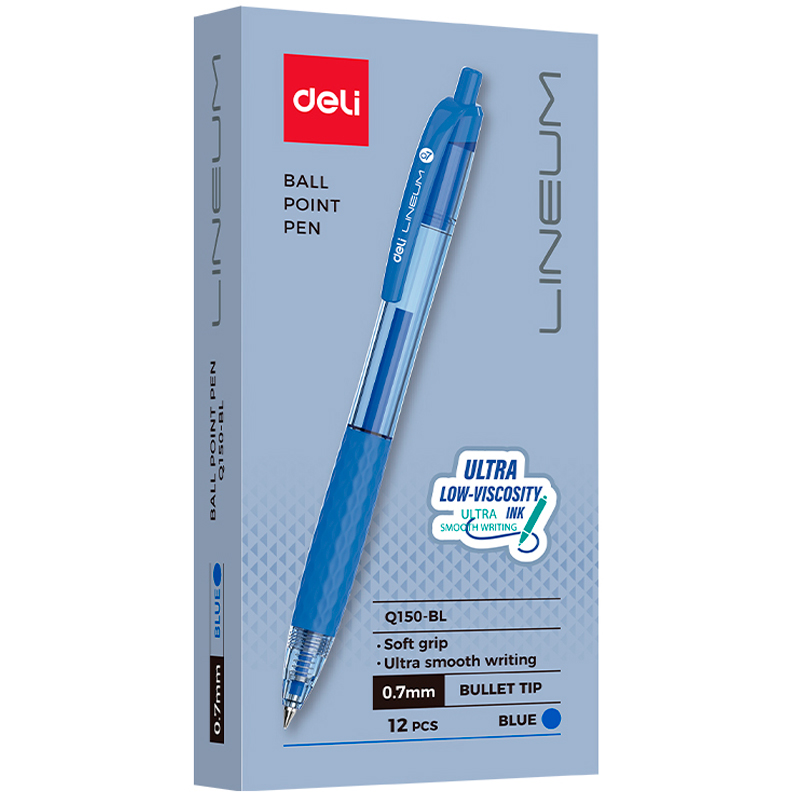 Ручка шариковая DELI "Lineum Q150" автоматическая, 0,7 мм, синяя, грип