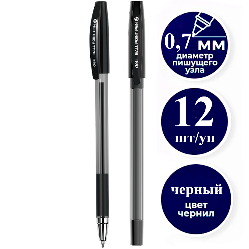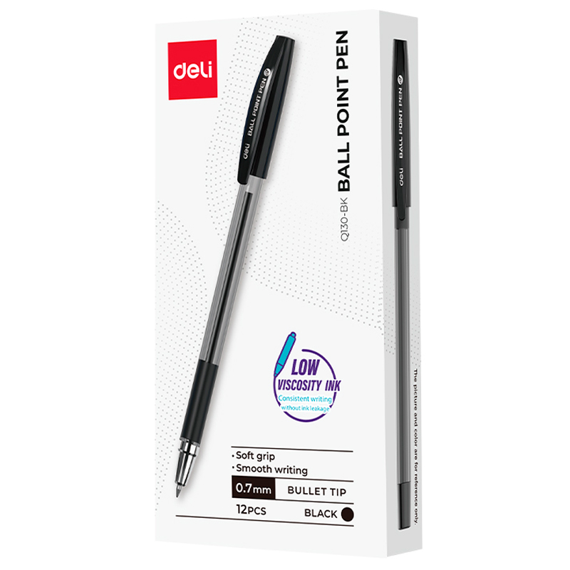 Ручка шариковая DELI "Q130", 0.7 мм, черная, грип