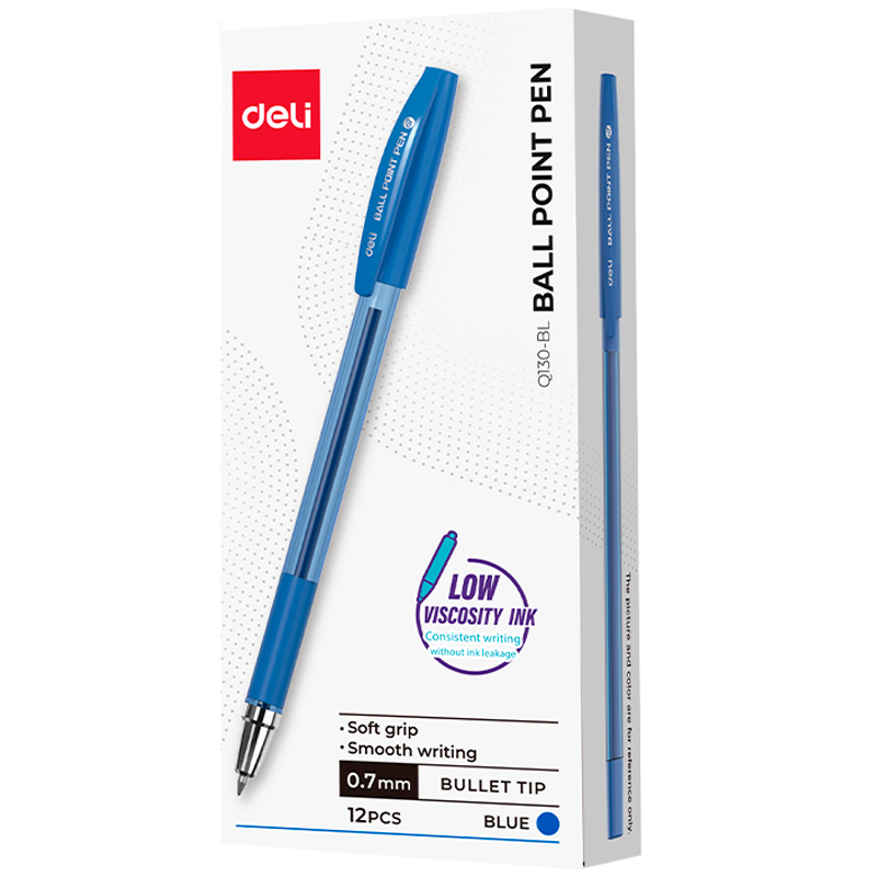 Ручка шариковая DELI "Q130", 0.7 мм, синяя, грип