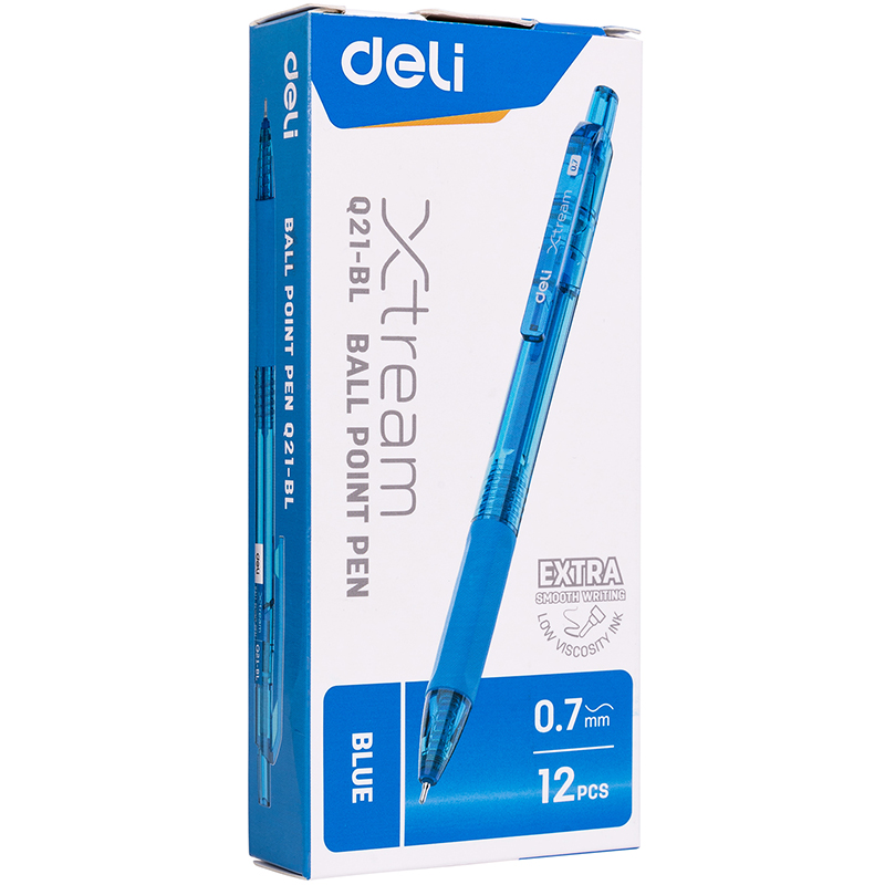 Ручка шариковая DELI "Xtream Q21" автоматическая, 0,7 мм, синяя, грип