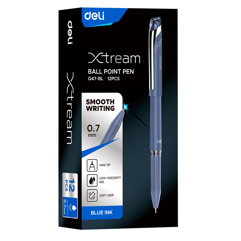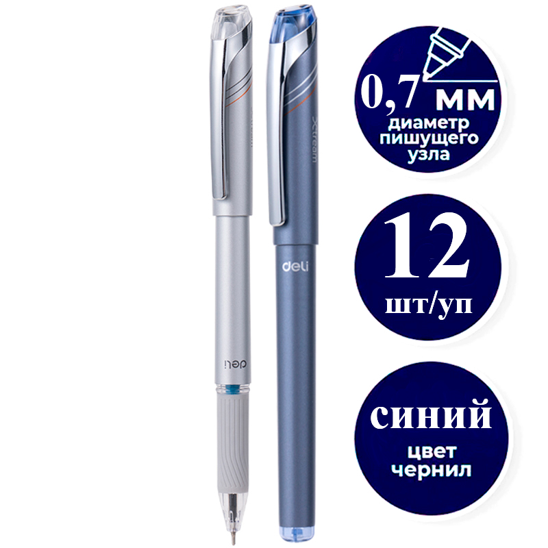 Ручка шариковая DELI "Xtream Q47", 0.7 мм, синяя, грип