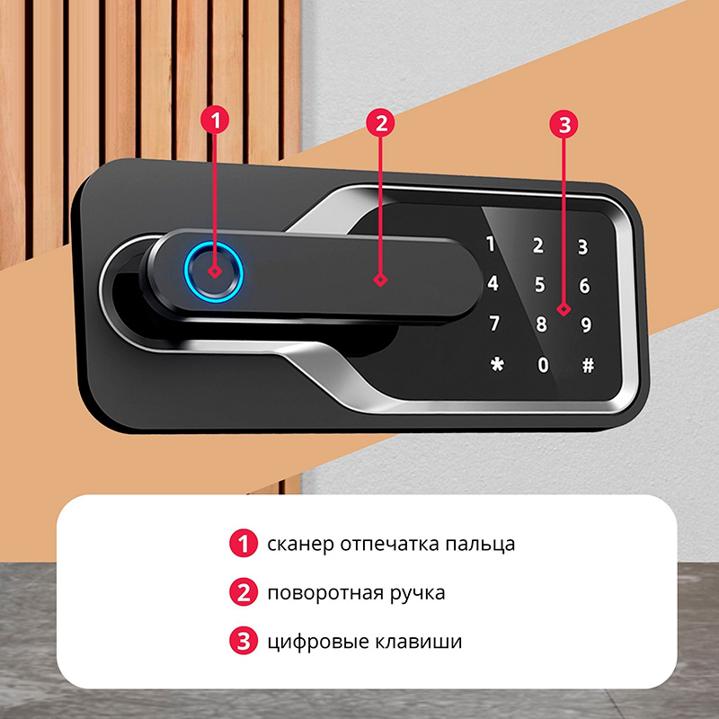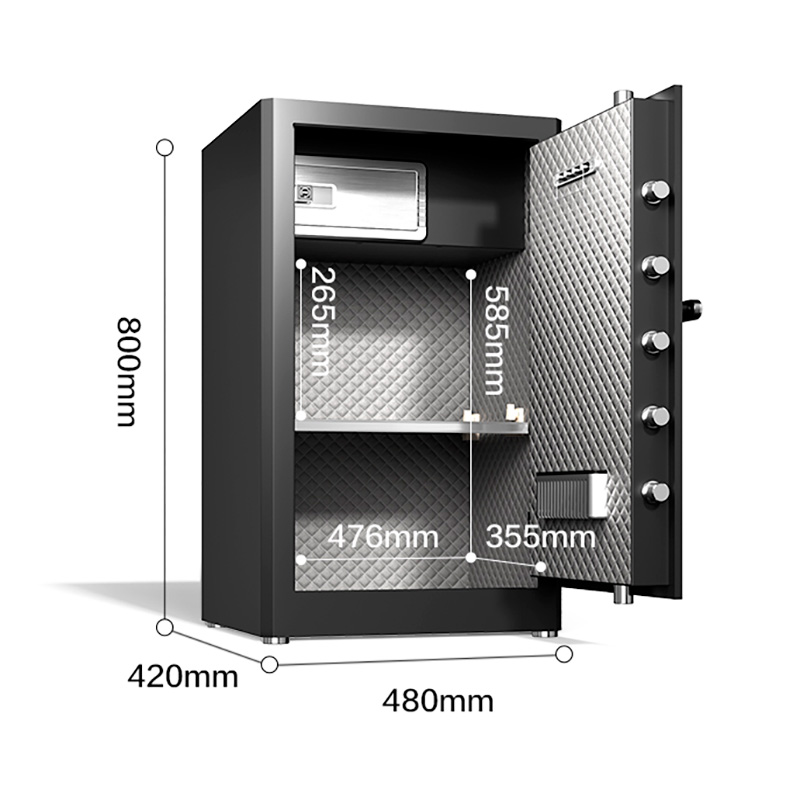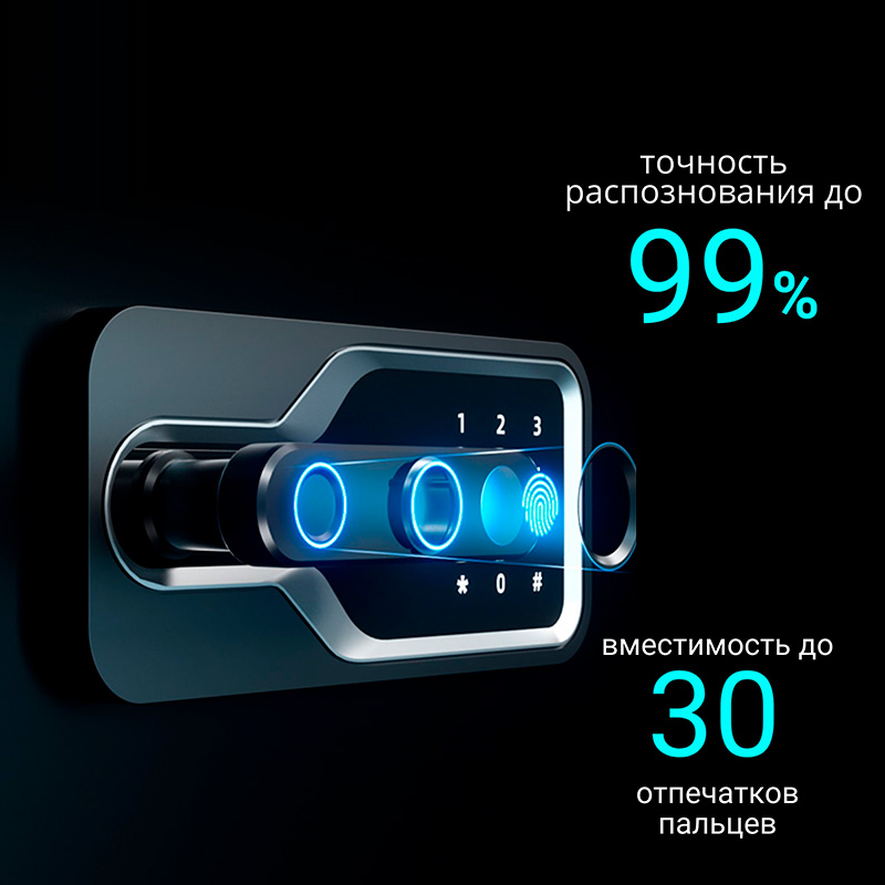 Сейф DELI "AE132" биометрический + электронный замок + ключ, 480х420х800 мм, 44 кг, черный