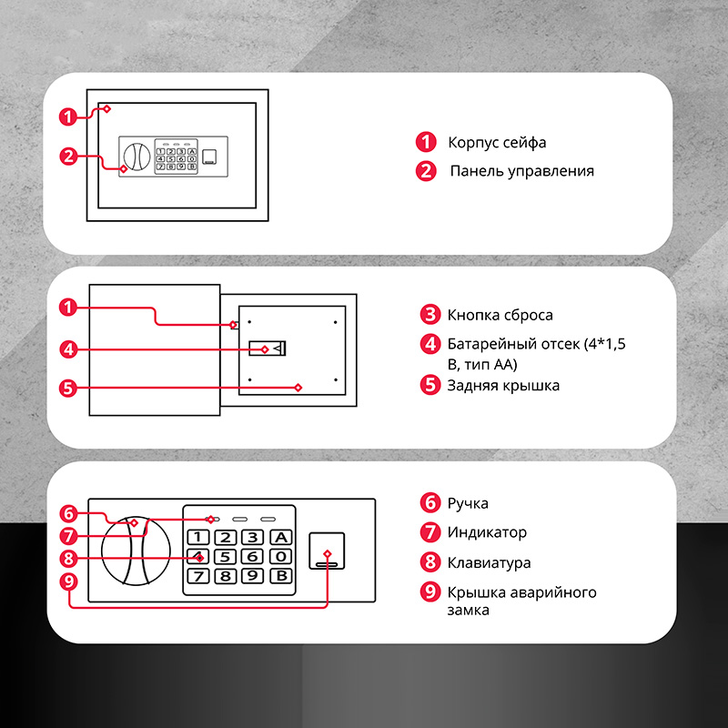 Сейф DELI "ET520" электронный замок + ключ, 310х200х200 мм, 4,5 кг, черный