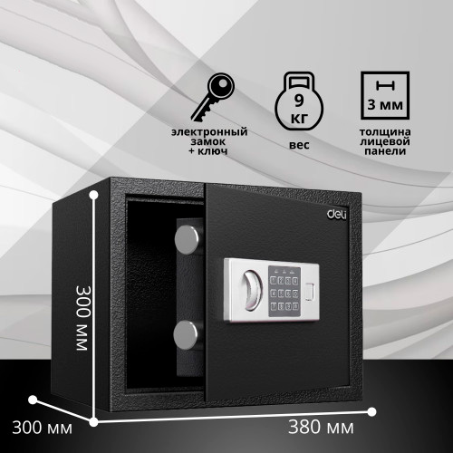Сейф DELI "ET523" электронный замок + ключ, 300х380х300 мм, 9 кг, черный