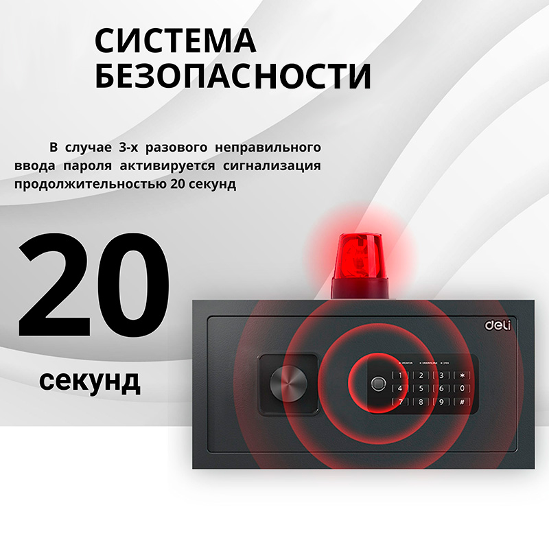 Сейф DELI "ET531" электронный замок + ключ, 420х370х200 мм, 9,4 кг, черный