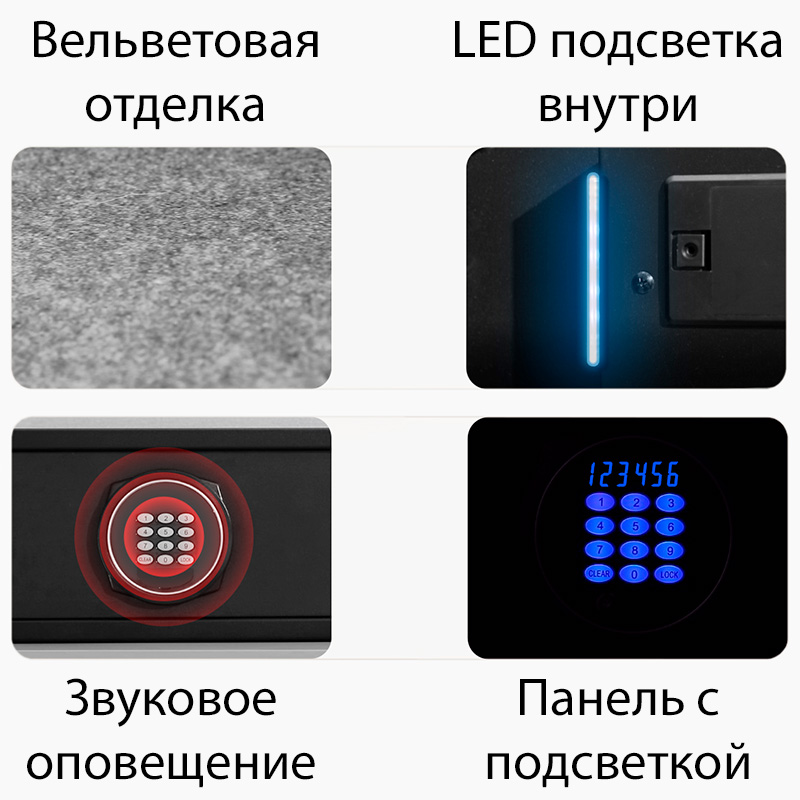Сейф DELI "ET547" электронный замок + ключ, 200х420х370 мм, 11 кг, черный