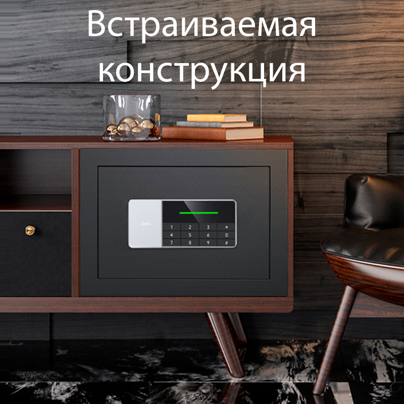 Сейф DELI "ET550" электронный замок + ключ, 350х250х250 мм, 5,9 кг, черный