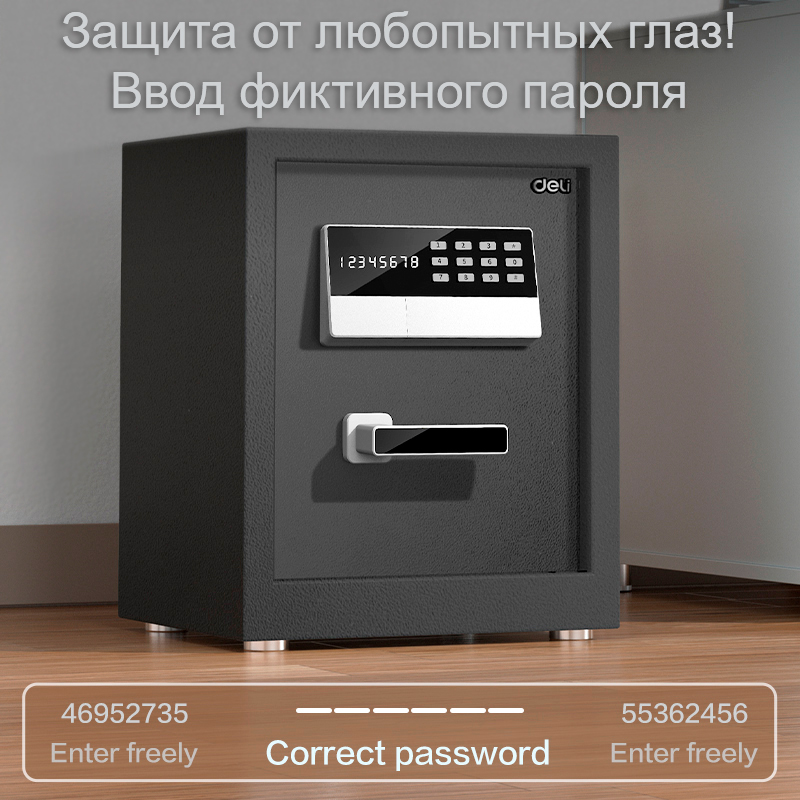 Сейф DELI "ET621" электронный замок + ключ, 410х340х595 мм, 32 кг, черный