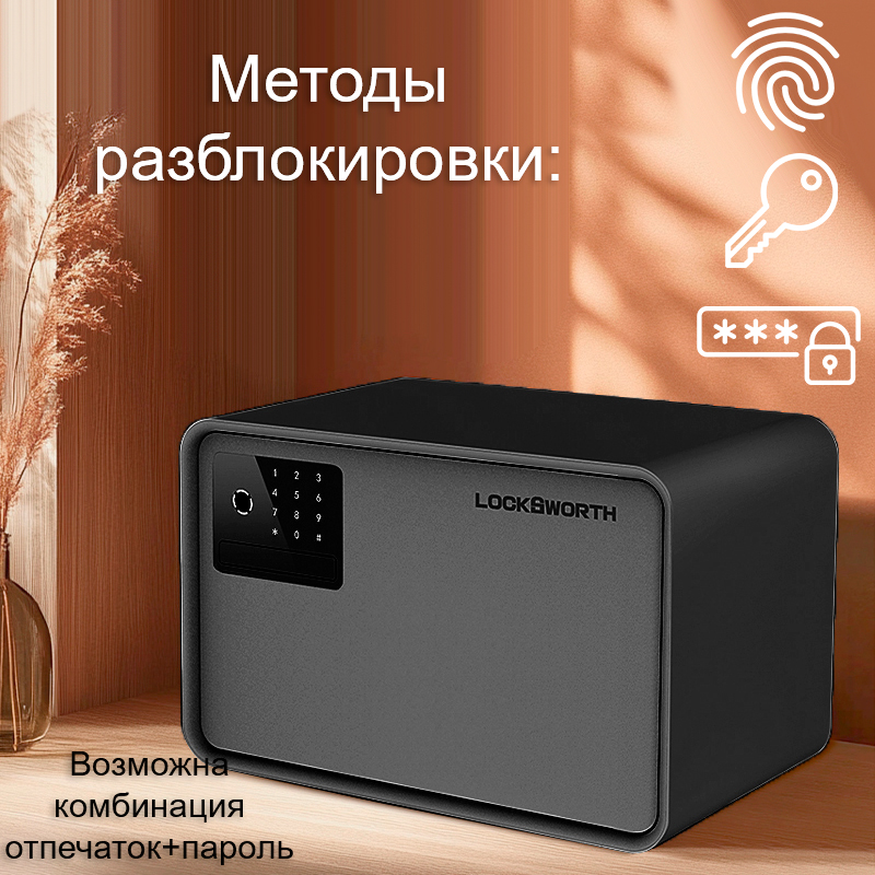 Сейф LockSworth биометрический + электронный замок + ключ, 250х360х250 мм, 6 кг, черный