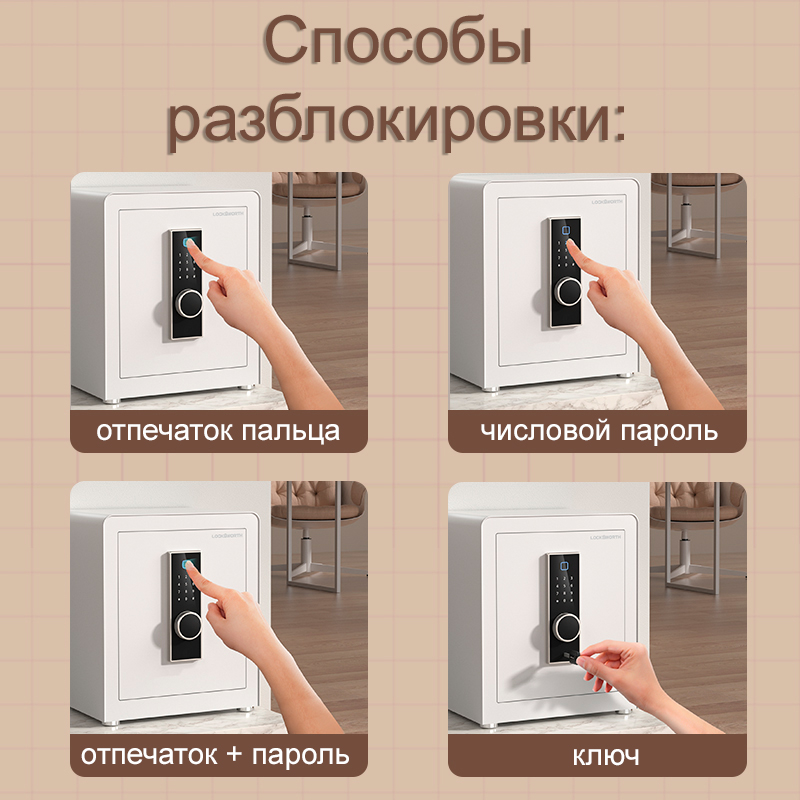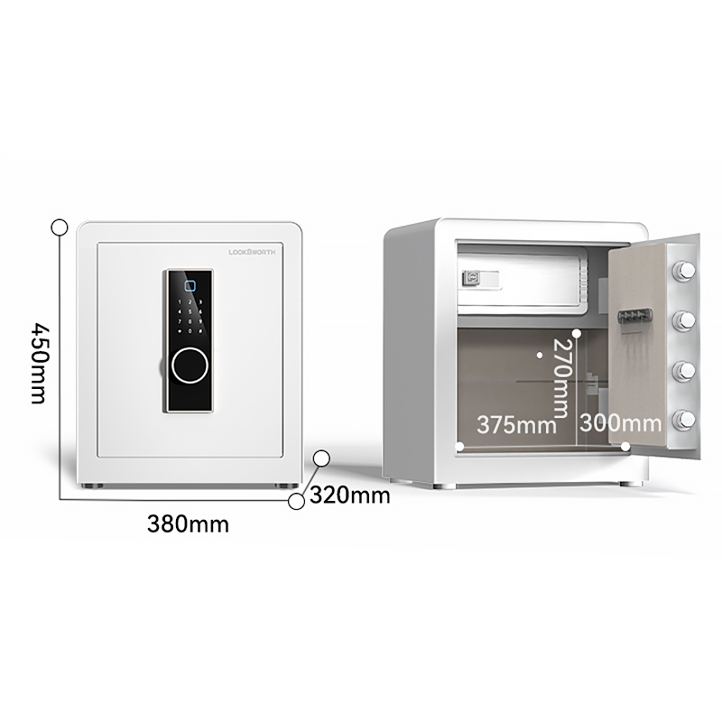 Сейф LockSworth биометрический + электронный замок + ключ, 450х380х320 мм, 20,7 кг, белый