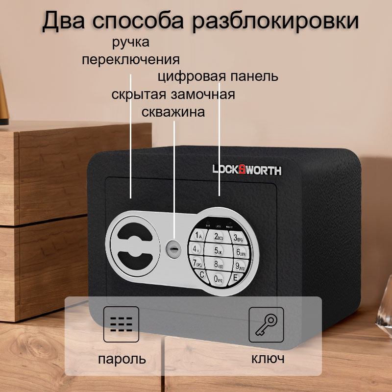 Сейф LockSworth электронный замок + ключ, 170х230х170 мм, 2 кг, черный