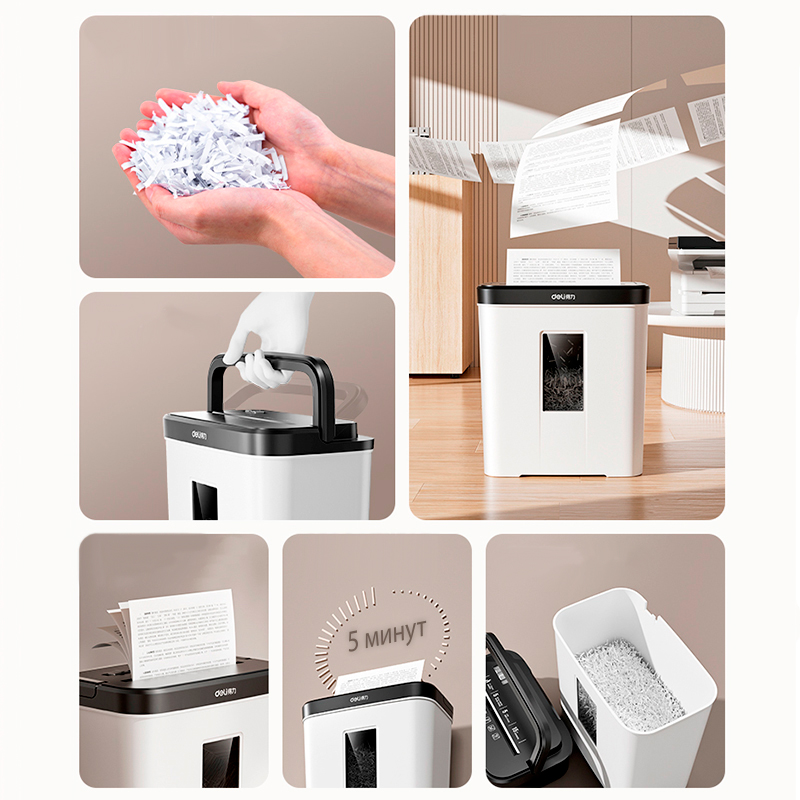 Шредер Deli, 4 уровень секретности (4х25 мм), 5 листов, 12 литров