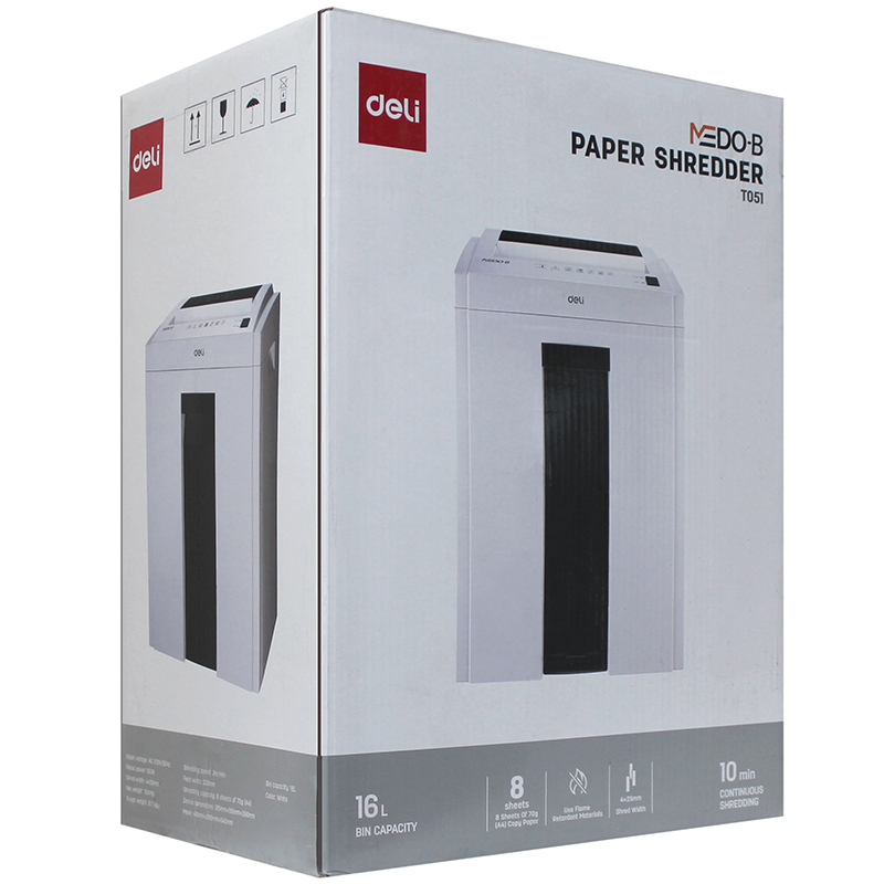 Шредер Deli, 4 уровень секретности (4х25мм), 8 листов, 16 литров