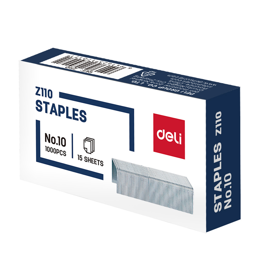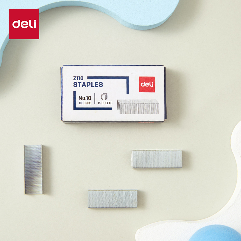 Скобы DELI для степлера №10 (15 листов), 1000 шт/кор серебро