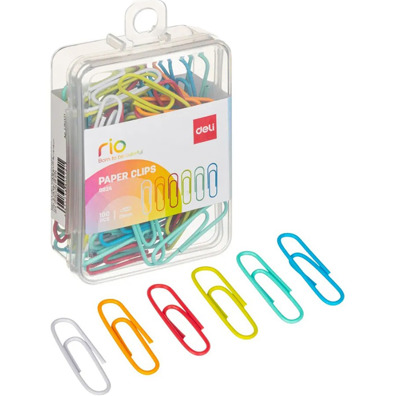Скрепки DELI 29 мм, цветные, бокс, 100 шт/упак