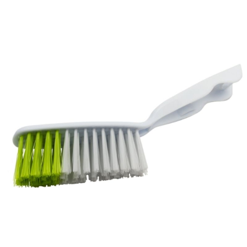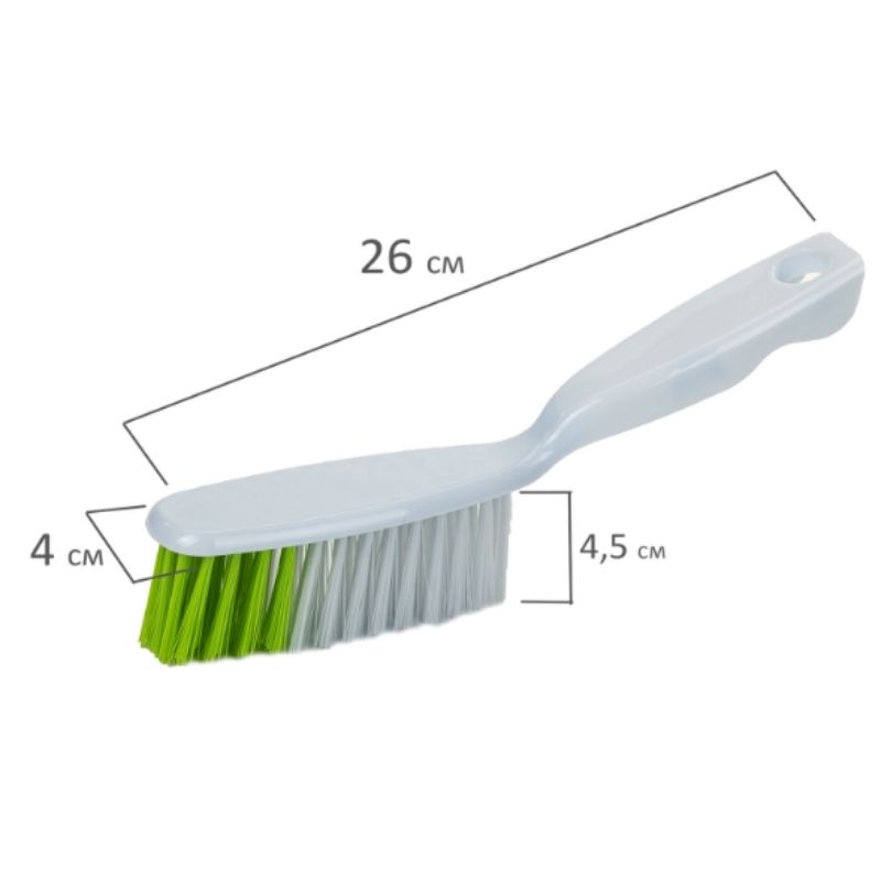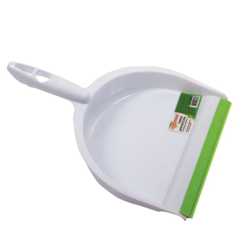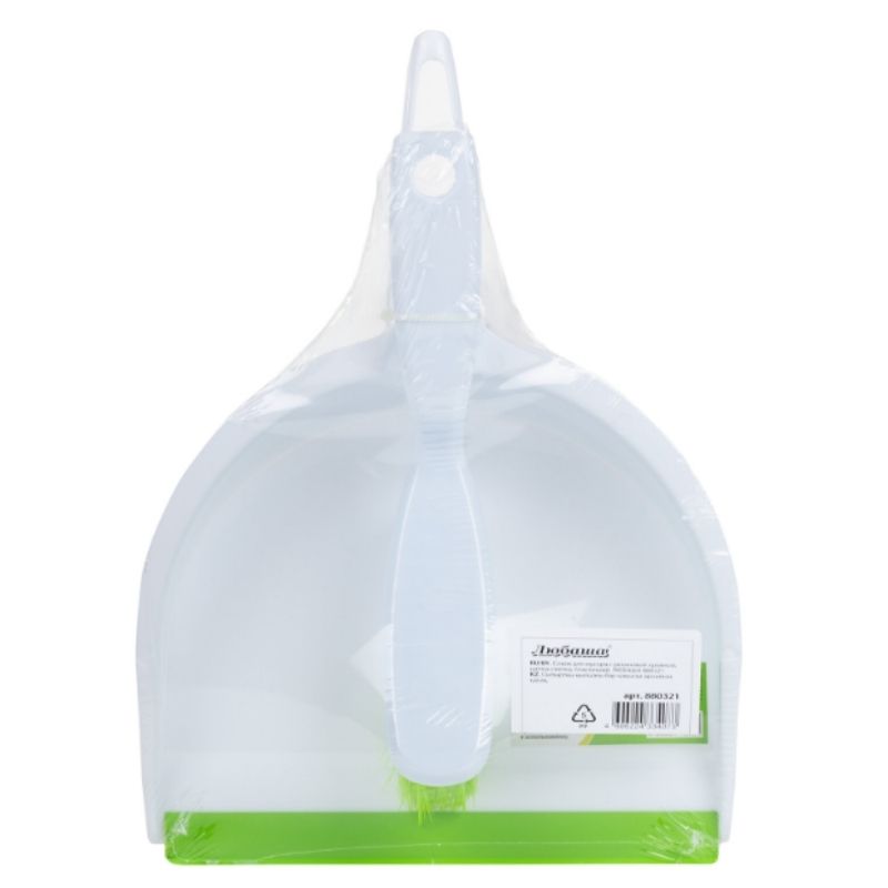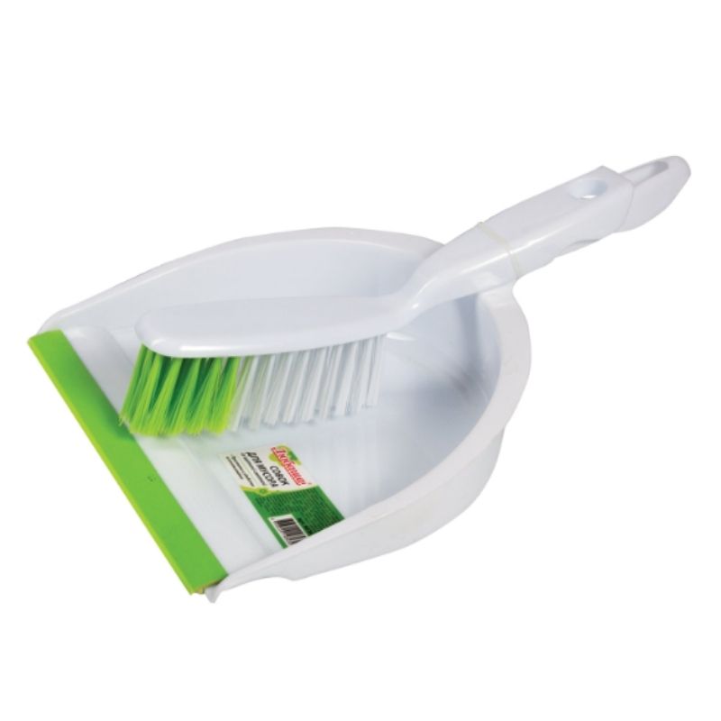 Совок для мусора + щетка ЛЮБАША, ручка 14 см, ширина 21.5 см, щетина 4см, рез.кромка, зелено-белый