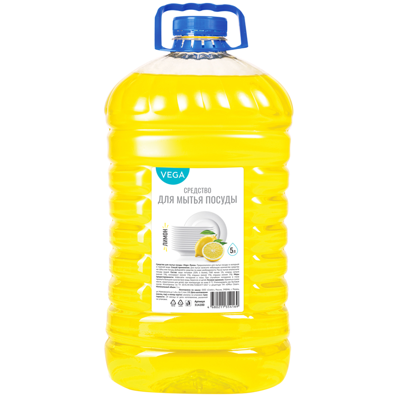Средство для мытья посуды Vega "Лимон", ПЭТ, 5 литров