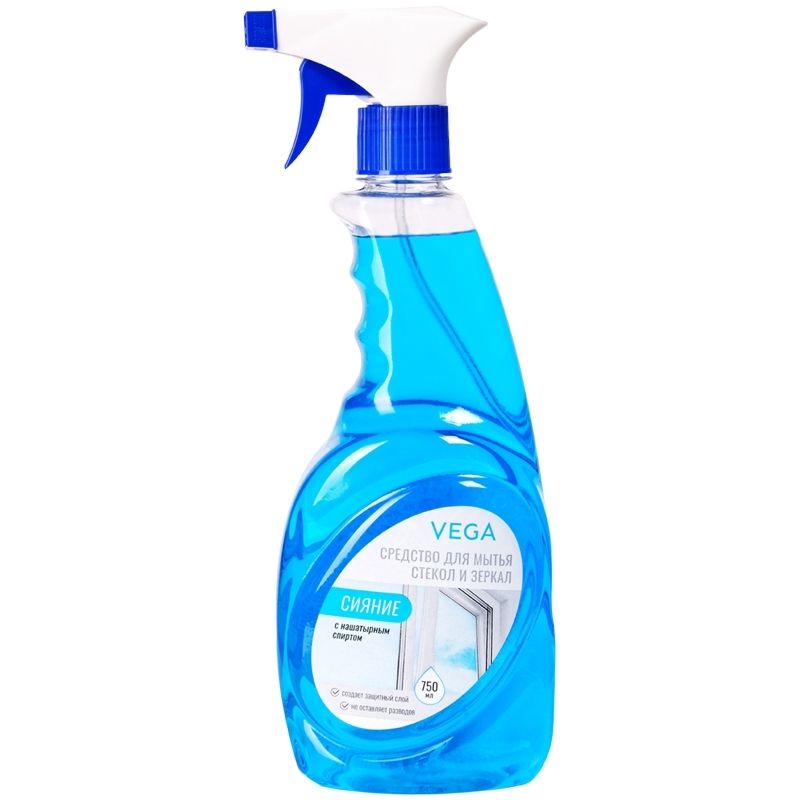 Средство для мытья стекол и зеркал Vega "Сияние", с нашатыр. спиртом, распылитель, 750 мл