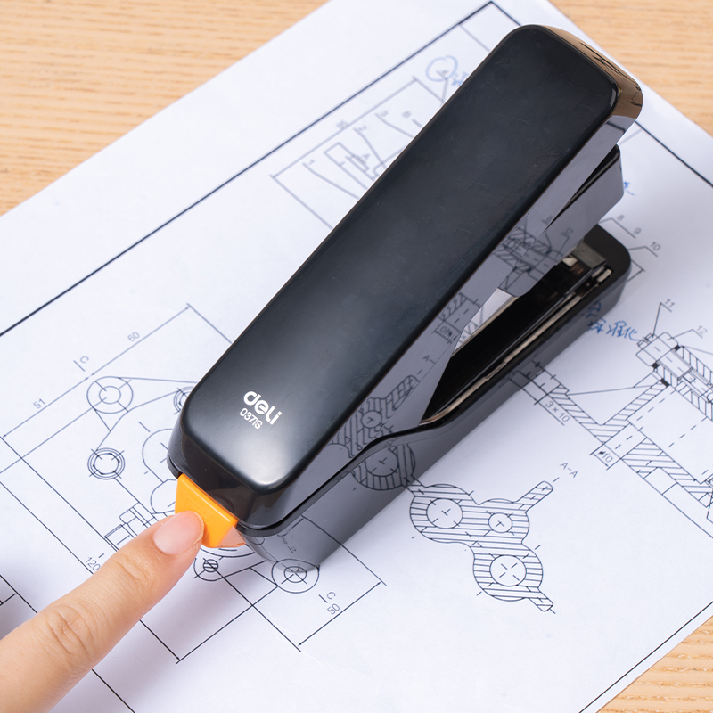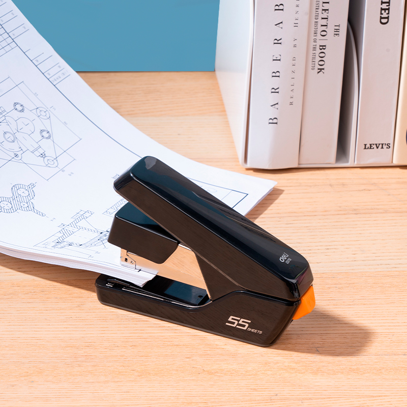 Степлер DELI до 55 листов, пластиковый корпус, облегченное нажатие (скобы №24/6, 26/6, 24/8), черный